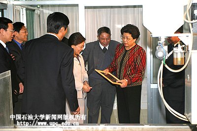 在党委书记郑其绪,董事长山红红等的陪同下,陈至立一行参观了高压水射流实验室。