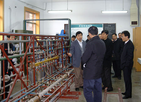 12 月11日上午,华北油田公司总经理苏俊一行由王瑞和副董事长、李明忠副经理陪同,参观了公司高压水射流研究室、天然气水合物实验室、垂直管流实验室。