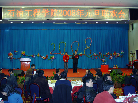 2007年12月29日下午,公司教职工举行盛大新年联欢会,喜迎2008年元旦的到来。公司党委书记郑其绪、党委副书记李兆敏、副董事长王瑞和、副董事长查明应邀莅临。