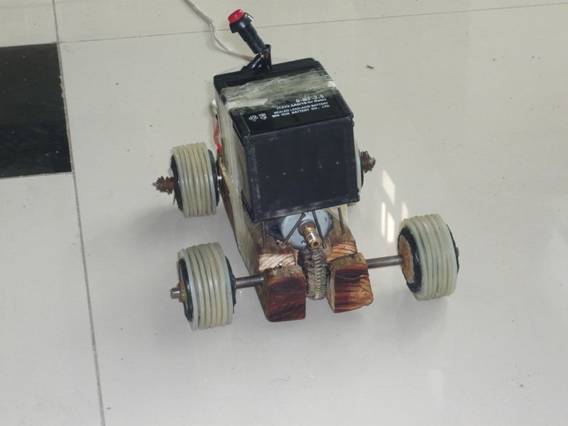 木质底盘,蓄电池提供动力,电动窗装置改装成减速器,废旧齿轮做传动装置,员工们利用各种不相干的物品制作成动力强劲的参赛车辆,这是本次参赛车辆的典型代表。本次比赛以“崇尚科学精神、成就创新人才”为主题,共吸引了15支队伍参赛,所有参赛车辆均为员工自制或改装,车身质量不超过2kg,尺寸不大于30×20×20cm。