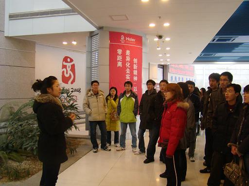 在海尔中心大楼一层工作人员为我们介绍了海尔的家电产品,用于医疗药品保鲜的深低温保存箱,先进环保的不用洗衣粉的洗衣机,专为奥运设计的第四代微波炉等。海尔最新设计的厨房卫浴设施,前卫时尚的数码产品令人惊叹不已。二层是见证海尔发展之路的展览室,海尔一直奉行自主创新的标准,努力打造面向全球各地的品牌。工作人员向大家介绍了海尔的创新科技成果,并详细介绍了海尔在不到20年的时间里创造的从无到有、从小到大、从弱到强、从国内到世界的卓著业绩以及海尔坚持走自主创新、科技强企之路,不断提高企业的核心竞争力,以其良好的经济和社会效益,成为国家自主创新典范的发展历程。