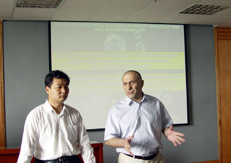5月17日,俄罗斯自然科学院院士库尔巴诺夫・亚拉克・玛姆码耶维奇来公司考察交流。经理姚军教授、副经理邱正松会见了库尔巴诺夫院士。双方进行了广泛的石油工程科技与教育的交流,重点讨论了油田钻井化学领域的前沿课题。库尔巴诺夫院士向姚军经理赠送了本人专著和礼物,并为学院题词留念。