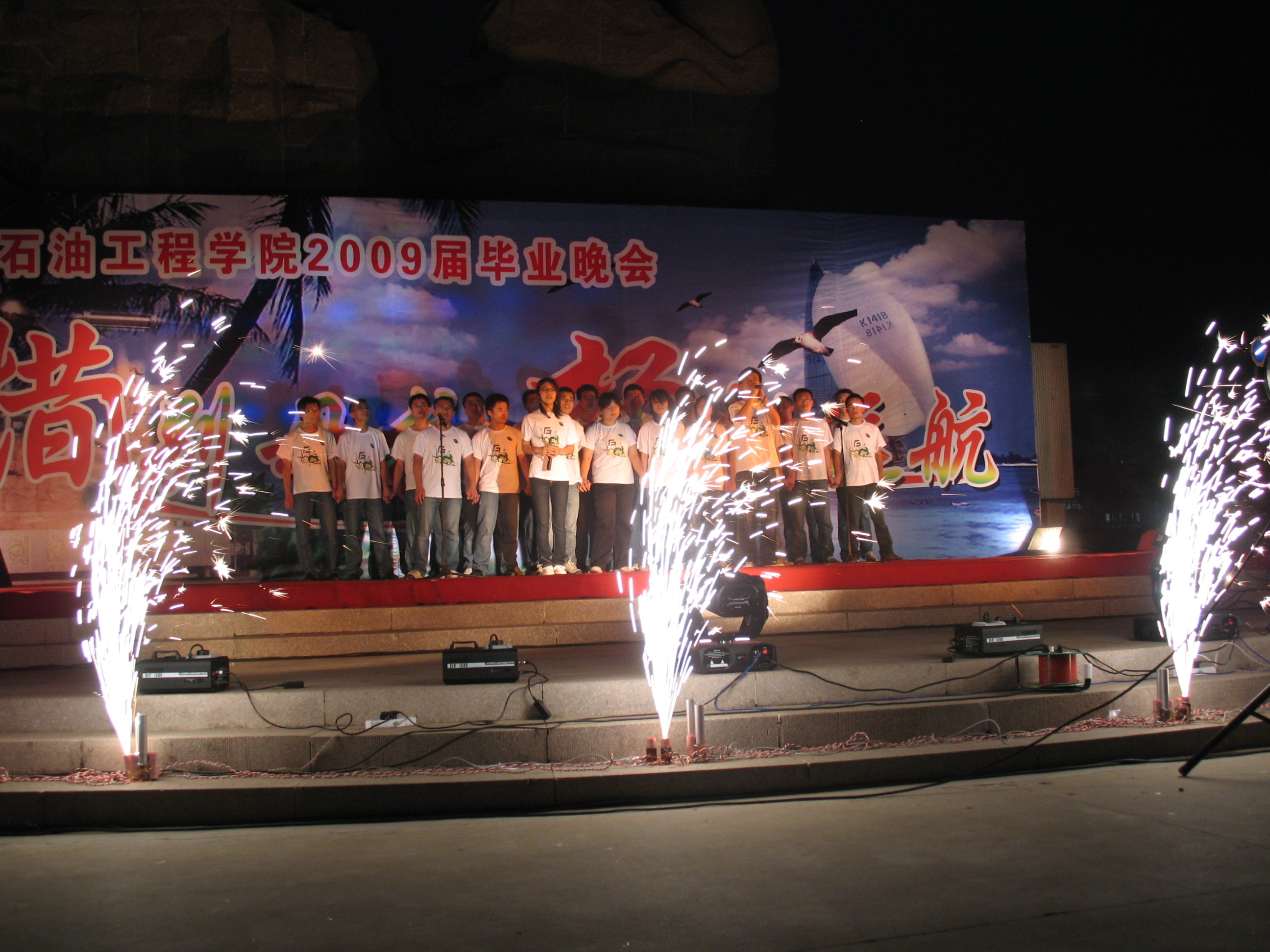 党委书记张卫东代表学院致辞,他勉励广大2009届毕业生要胸怀感恩、勇往直前,为石油行业、为祖国发展奉献自己的力量。晚会分为三个篇章:青春纪念册、感恩的心、放心去飞。毕业生们倾情演唱《青春纪念册》、《真心英雄》、《众人划桨开大船》、《我为祖国献石油》、《感恩的心》等歌曲,抒发了献身石油的万丈豪情,吐露心声,表达了在离别之际对学校和老师的留恋和感恩。《我的未来不是梦》、《超越梦想》、《放心去飞》等节目将晚会的气氛推向高潮,寄托了毕业生对母校的祝福,也表达了对未来的信心和执着,不辜负母校和老师的培养。