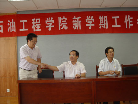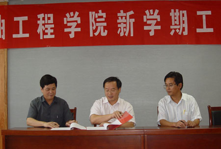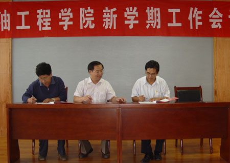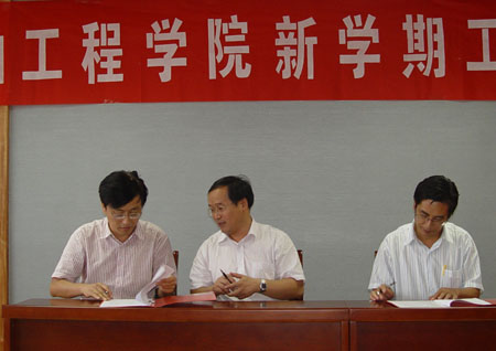 在新学期工作会上,各分管领导就人事财务、党委与行政、公司产品、本科教学、科研与培训、实验与资产、员工工作等7个条块向全院干部进行了详细解读,听取了各单位现阶段工作运行中存在的困难和问题。另外,会上学院分别与油气井工程系、采油工程系、油藏工程系、油田化学系、海洋工程与流体力学系、实验教学中心、高压水射流研究中心等7个单位签订了任期目标任务书。