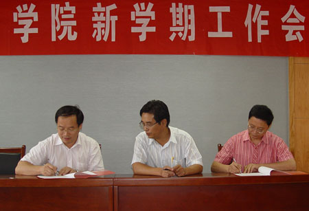 8月29~30日,围绕《2009-2013年威廉希尔WilliamHill(部)目标任务书》,威廉希尔WilliamHill相继召开了院领导班子研讨会和全院新学期工作会,统一思路、细化责任、突出重点、协同配合,打破发展瓶颈、优化育人环境,并与院属各三级单位签订了任期目标任务书。