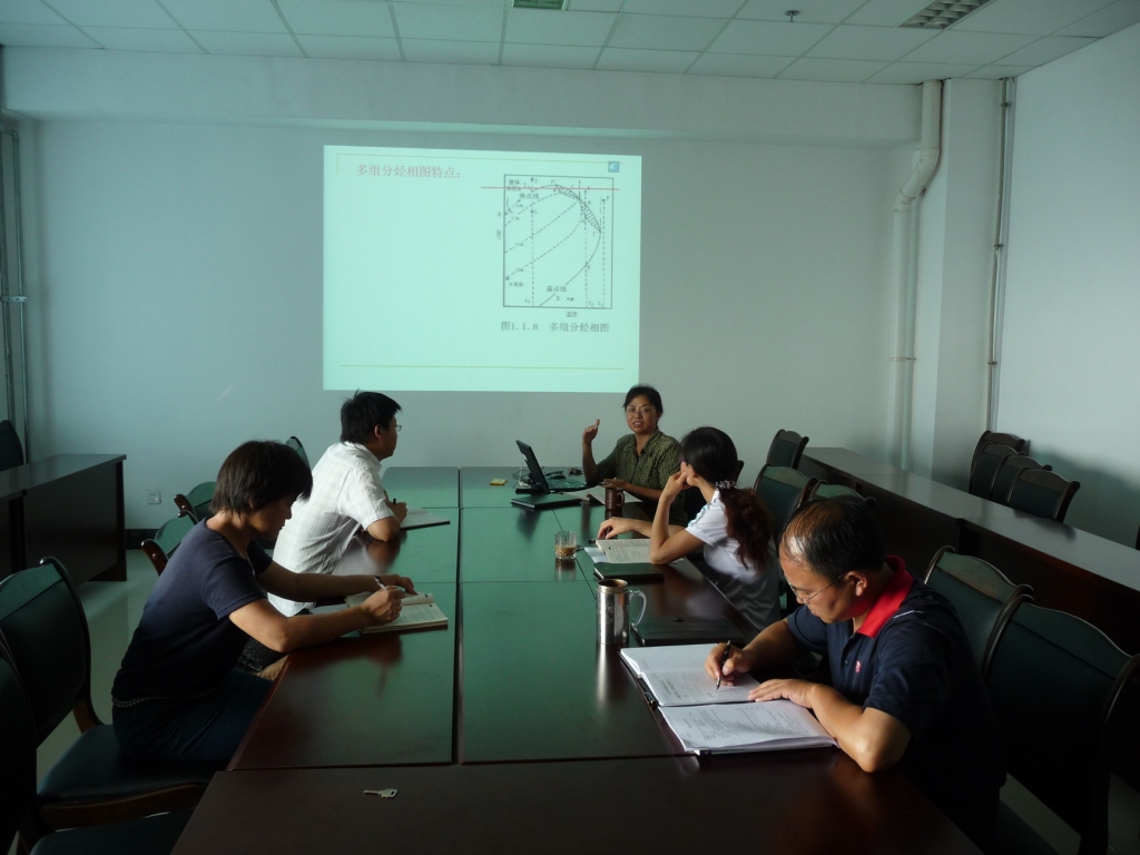 研讨中,李爱芬教授首先与大家一起探讨了《油层物理》第一章授课过程中需要注意的问题,并对反常凝析现象的解释方法、多组分体系相图测试方法、油气分离方式以及多级分离计算等问题进行了示范讲解。在《油层物理》教学大纲修订的问题上,团队老师结合自身的教学经验和体会,从汉语教学、双语教学、全英语教学、石油工程专业教学、其他专业教学等方面进行了深入细致的交流与讨论,并达成广泛共识。同时,对于近期学院组织的实验教学改革活动,全体老师纷纷建言献策,教研活动取得了良好成效。