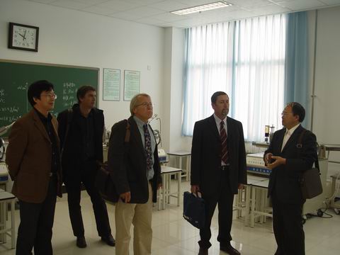 法国国立海军工程学院(简称“ENSIETA”)Philippe DHAUSSY等一行来校交流期间,在国际合作与交流处蒋大森副处长的陪同下,于10月19日上午参观了公司实验室。