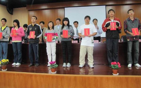5月9日,青岛校区逸夫楼二层会议室气氛热烈、掌声不断,公司2010年田径运动会表彰大会在此隆重举行,院领导、各系中心负责人、教授及老员工参加表彰大会。经理助理、工会主席赵修太宣读表彰文件:院机关工会小组“先进组织单位”,20人获教职工和老员工“十佳运动员”荣誉称号、69人分获“优秀运动员”、“优秀教练员”、“优秀志愿者”荣誉称号。