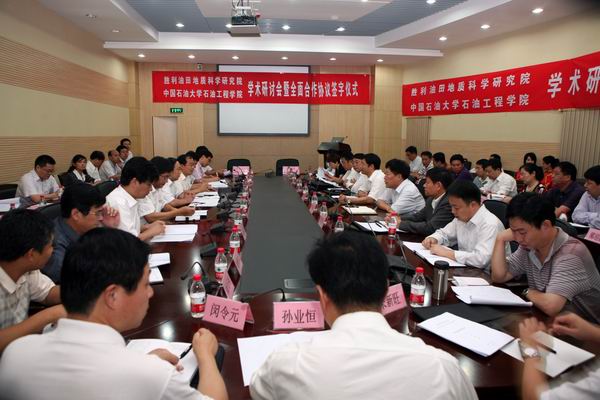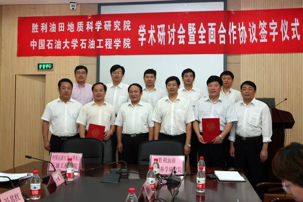 为保持并推动双方在科学研究、学术交流、人才培养等方面的高效有序合作,在本次会议上校企双方签订了全面合作协议。根据协议,双方每年至少开展一次学术交流活动,重点研讨和交流相关领域的科技发展动态,总结双方的科研合作情况并制定进一步合作研究计划。企方将根据胜利油气田开发的实际需要,双方共同组建若干相对稳定的科研团队,共同申请省部级以上的科研平台,共同承担国家和上级部门的相关重大科研攻关、基础研究以及超前储备项目,争取形成较大科研成果。校方将聘请油田的部分专家作为兼职教授,单独或共同指导相关研究生的培养和本科生的实习,油田作为学校研究生工作站和员工实习基地,每年接受一定数量员工进行实习和生产实践并为员工的实习和实践提供必要的便利条件。