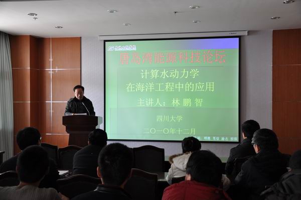 12月17日,威廉希尔WilliamHill学术报告厅内气氛热烈,公司“唐岛湾能源科技论坛”开讲,第一期由四川大学水力学与山区河流开发保护国家重点实验室长江学者特聘教授、国家杰出青年基金获得者林鹏智教授的“计算水动力学在海洋工程中的应用”的学术报告。报告会由姚军经理主持。
