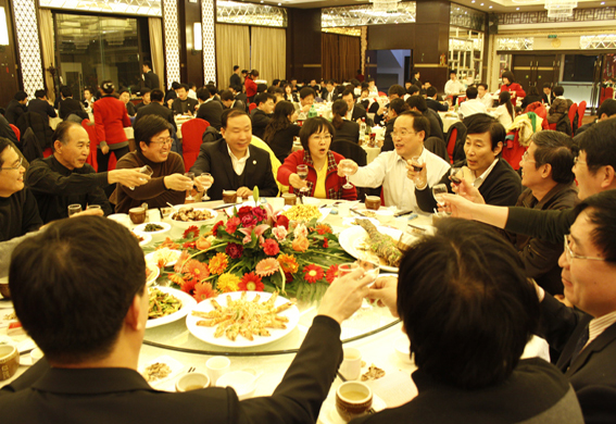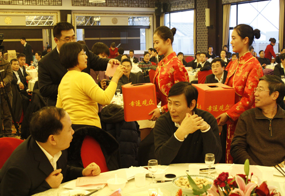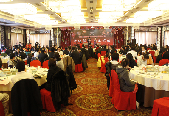 伴着严冬的丝丝寒意,玉色的兔年满载着希望和梦想向我们走来。12月29日,丰泽山庄国宴厅内红灯高挂、欢歌笑语,到处洋溢着节日的喜庆气氛,公司2011年元旦联欢会在这里隆重举行。董事长山红红、副董事长王瑞和、董事长助理杨茂椿、院友代表、机关各部门领导以及学院全体教职工240余人参加了此次联欢会。