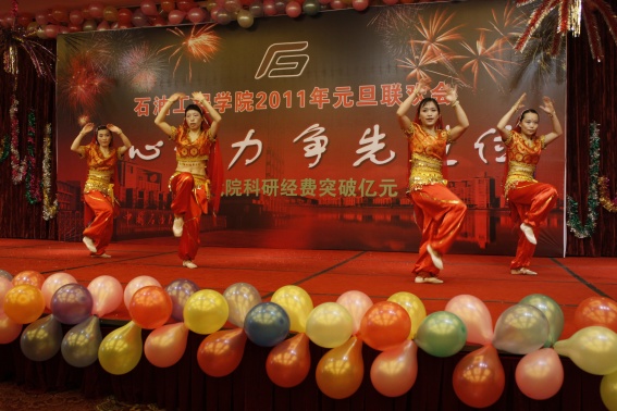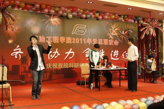 下午3点,元旦联欢会正式拉开帷幕。经理姚军首先致新年贺词,他总结了公司2010年在人才培养、团队建设、科学研究、实验教学、员工工作等方面取得的成绩,他感谢广大教职工所表现出的团结协作和无私奉献精神,对学校的支持表示了衷心感谢。2010年是学院发展史上极为辉煌的一年:国家级人才实现突破、科研经费首次过亿元,多门课程被评为国家及省级精品课,国家级、省部级科技成果取得重大突破,员工工作再上新台阶。