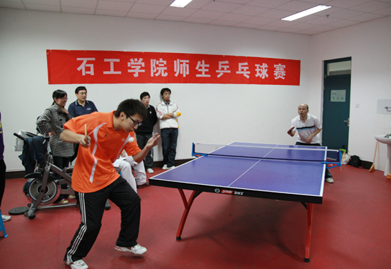 本次比赛分为男单、女单两种形式,比赛采取三局两胜制。参赛队员有9名老师组成教师代表队和有12名员工组成的两支员工代表队,每只代表队有四名男选手和一名女选手组成,之后四强进行循环赛,胜队记一分,负队记零分,按分数进行排名。赛前,公司党委书记张卫东致辞,鼓励师生赛出风采、切磋技艺、增进友谊。“友谊第一,比赛第二”,各个师生队友跃跃欲试,激情饱满。由李明忠、冯其红、王林、苏玉亮、孙仁远、薛建泉、吴学东、赵晓燕、曲晓琳老师组成的教师队伍展现出精湛的乒乓球技,而由史胜龙、杨戬、王静、张昊等12名07级毕业生组成的员工队也打出了属于年轻人的风采与活力。两队的选手们在比赛过程中,积极拼搏,挥汗如雨,热烈的喝彩声不时传来,兴奋的“好球”声不断。队员们在奋斗的同时享受比赛的乐趣,为大家带来了一场场精彩的视觉盛宴。最终经过激烈角逐,两队以平手结束这场精彩的比赛。这场精彩的比赛将给07级的毕业生们留下无限美好的回忆。