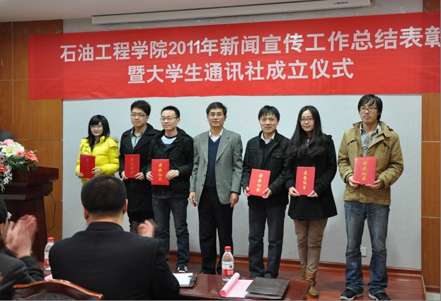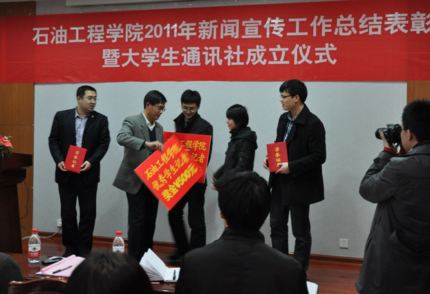 王林副书记首先对2011年威廉希尔WilliamHill新闻宣传工作进行了总结。他指出,学院新闻宣传工作取得了良好的成绩与长足的进展,呈现出了形式多样、重点突出、注重实效等特点,新闻宣传宣传工作围绕特色定位、重大事件及先进教师典型,注重持续不断地组织策划,进行积极充分的宣传报道,为学院发展营造了良好的舆论氛围,有力促进了学院各项工作的展开。会上,党委书记张卫东宣读了《关于表彰2011年度新闻宣传工作先进个人的决定》,决定授予季林海、毛剑“优秀教工记者”荣誉称号,授予吴逸舟、张宏博“优秀员工记者”荣誉称号,授予刘召利等六人“新闻宣传先进个人”荣誉称号。团委书记刘召利宣读了《威廉希尔WilliamHill老员工通讯社章程》、《威廉希尔WilliamHill老员工通讯宣传工作奖励管理办法》,对通讯社人员安排、管理制度、奖励办法等事项进行了说明。