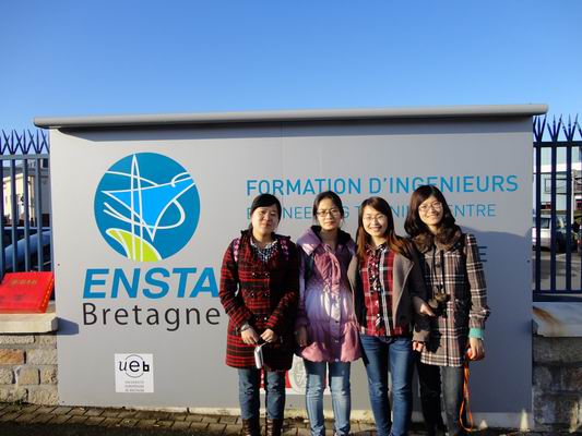 焉琳琳(左三)等在法国国立海事工程学院门前合影