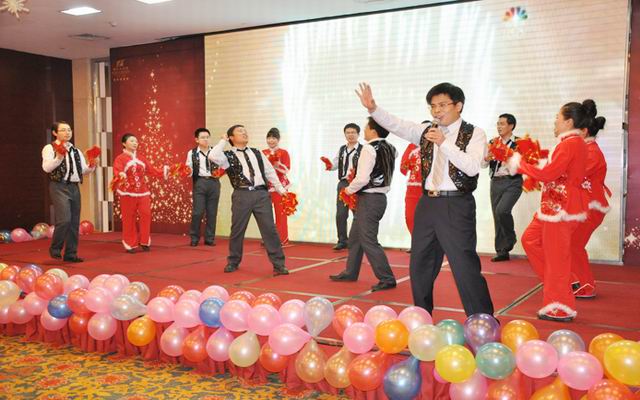 精彩的文艺演出之后,公司党委书记张卫东提祝酒词,元旦酒会正式开始。