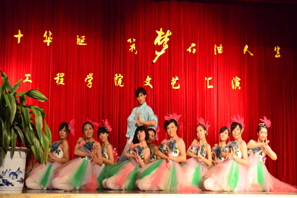 节目最后在为遭受雅安地震之灾的灾民加油祈福的歌曲――《为中国加油》的歌声中落下帷幕。晚会既抒发了公司师生对祖国对母校的无限热爱和感激之情,又彰显了石油人立足本职岗位、“为中国加油”的豪迈气概,呈现出师生同台共舞、共谱美好未来的和谐画面,同时也为校园文化建设增添了无限生机与活力。