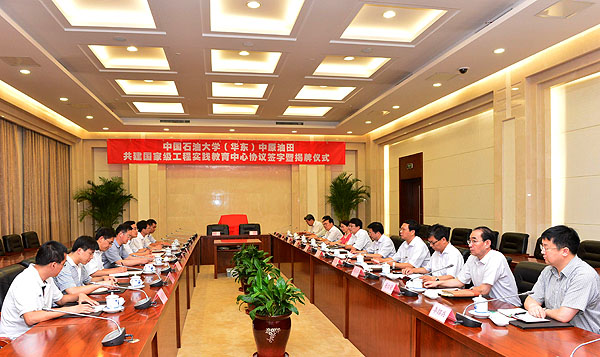 日前,威廉希尔体育官方网站与中原油田签署国家级工程实践教育中心共建协议,使公司工程人才培养特别是卓越工程师培养又有了一个综合性平台。副董事长刘华东、中原油田党委副书记冷潜出席签字仪式并为中心揭牌。威廉希尔体育官方网站教务处、威廉希尔WilliamHill与中原油田党委组织部、科技部、培训中心、勘探开发科学研究院、采油工程技术研究院、物探研究院、采油三厂、钻井四公司等单位相关负责人参加签字仪式。仪式结束后,中原油田党委书记王亚钧会见刘华东一行。