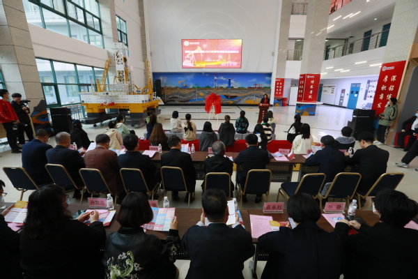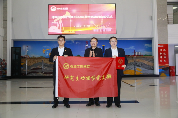 副董事长、学院经理戴彩丽致辞,副董事长周鹏和党委副书记马国顺为博采书院揭牌,党委副书记万云波为党的二十大精神师生宣讲团代表颁发聘书、为研究生功能型党支部授旗,教育部直属高公司党建联络员、中国海洋大学原党委副书记李耀臻讲话,公司党委书记张展宣读成立党的二十大精神师生宣讲团及研究生功能型党支部的文件,副经理黄维安宣读导学思政月活动方案。公司原党委书记管志川,学院原党委书记、公司党委常委、组织部部长张卫东,学院原党委书记、公司党委常委、地球科学与技术公司党委书记赵放辉,团委书记季林海,党委组织部副部长梁秀萍,党委宣传部副部长袁永红,党委员工工作部(武装部)副部长孙鹏燕,研究生院质量建设与评估办主任毕静,教务处副处长时金华,以及公司全体院领导、各系所中心负责人和师生代表200余人参加仪式。