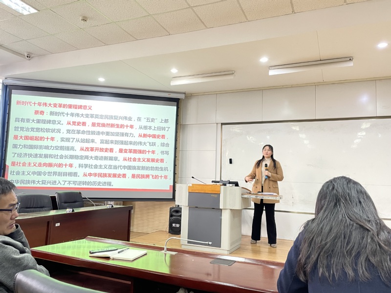 课堂上,宋海儆老师从“大会主题和重要历史意义”,“二十大报告的总体框架”、“深刻领会‘五个牢牢把握’”三个方面讲授了党的二十大原文报告中的核心要义、精神实质和实践要求,并就报告中与高校师生密切相关的“马克思主义中国化时代化”、“教育、科技、人才支撑现代化强国建设”、“文化自信自强”等内容作了重点阐释和讲解,对报告蕴含的新观点、新论断、新思想、新战略、新要求进行了详细梳理和解读。