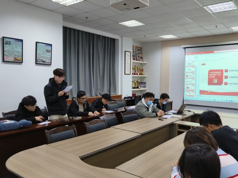 活动伊始,张振军带领支部党员集体学习了新时代十年来取得的伟大成就和新时代十年的伟大变革。赵志强同志学习后说道:“近十年中国取得的历史性成就,是习近平新时代中国特色社会主义思想科学指引的结果;党的全面领导是实现我国飞速发展的根本保证,党发挥总揽全局、协调各方的领导核心作用,我们的前进动力更加强大。”王文宇同志表示,我们新时代青年定将不负党和人民期望,学习科学知识,贡献自己的力量,奋力谱写全面建设社会主义现代化国家的新篇章。李娜同志表示,中国大批核心技术纷纷突破,超级计算、高速铁路、智能电网等进入世界前列,移动支付、智能家居等方便了我们的生活,我国正迈向更加公平、更有效率的复兴之路。