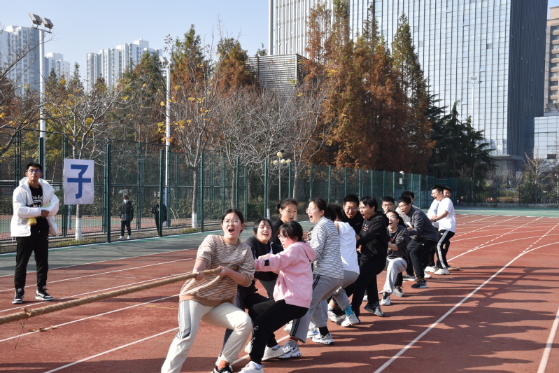 历经数日的训练后,比赛于11月24日如期举行,与外国语学院进行了第一场对抗赛,最终以3:0的成绩首战告捷,顺利晋级;11月25日,2:1战胜化学化工学院顺利晋级四强;11月27日中午以2:1战胜材料科学与工程学院,晋级决赛;下午以2:1战胜理学院顺利取得班级对抗赛冠军。比赛过程中,大家根据团队情况,及时调整战术,采取了“扬长避短”的原则,不再钻入全胜的牛角尖,转而保持跳大绳和旋风跑两项的绝对优势,尽全力争取拔河,最终在无数的欢呼与呐喊中,获得冠军。