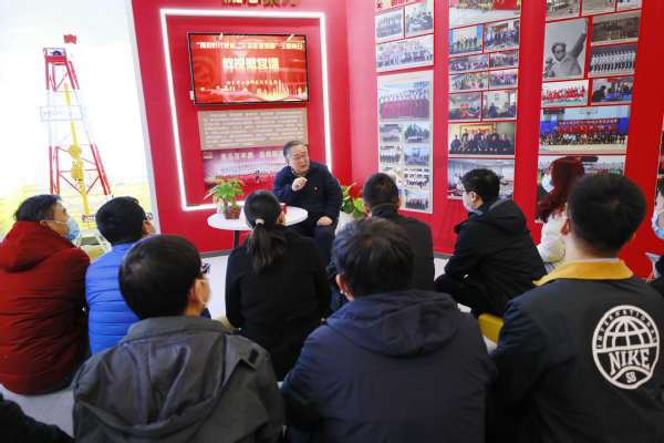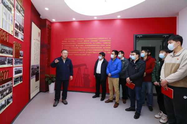 【本站讯】在全党全国上下深入学习宣传贯彻党的二十大精神之际,12月9日,油气井工程研究所党支部举行“勇担时代使命,矢志能源报国”主题党日活动,邀请管志川教授在威廉希尔WilliamHill“向党心·石油魂”全国先进基层党组织党建教育基地,为支部青年教师及研究生党员讲授题为“忆先辈·学英才·修德自强”的微党课。油气井工程研究所党支部书记王子振主持活动。