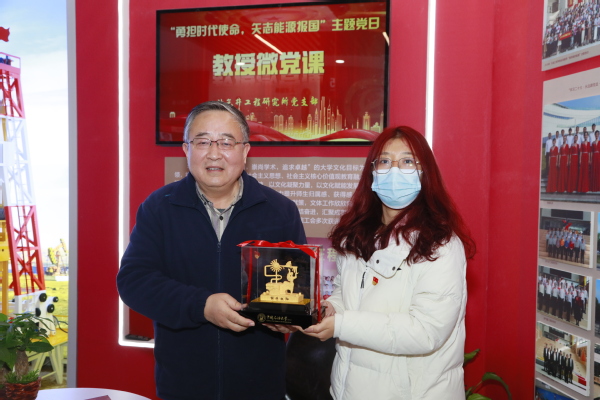 员工代表为管教授送上了“创造太阳”纪念品,感谢他多年来扎根一线默默耕耘,坚守教育初心,潜心教书育人。活动最后,全体师生来到“向党心·石油魂”全国先进基层党组织党建教育基地的党旗前合影,在快门定格的一瞬间,石油精神注定在老中青三代石工人内心深处扎根,并将不断赓续传承。
