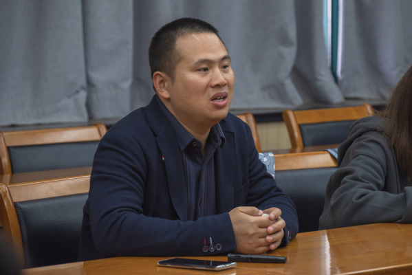 陈银吨首先对王大勇的到来表示感谢,紧接着他从学院新闻宣传工作的组织架构、骨干成员、运营情况等方面向王大勇介绍学院新闻宣传方面工作的基本情况。王大勇以“写媒体欢迎的稿件”为主题展开本次宣传工作经验分享,他结合自身的实际案例,分别从“多和媒体记者交流,获得媒体需求的信息”“关注热点新闻,结合学校特色” “对新闻点不断挖掘”等几个方面以及自身的一些采写经历,分享新闻稿相关写作经验。王大勇强调,要有好的传播效果,就要做到线索激励、紧跟热点、利用融媒体传播、与媒体互动。最后,王大勇通过几张新闻摄影作品提出,在突出新闻主体的前提下,利用不同场景照片,以多角度拍摄体现活动特色。
