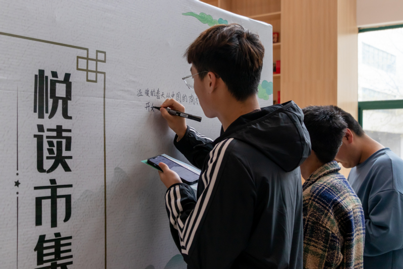 展报细读,员工手拿报纸从传统角度观察世界;手捧竹简,员工大声诵读着经典诗篇;挥毫泼墨,员工在宣纸上写下壮丽诗篇;提笔而起,员工在签名墙上留下独属于自己的三行书评;头脑风暴,员工畅游于红楼梦传奇的故事中。书柜旁,台阶上,员工们沉浸在书籍的世界里,指尖慢慢划过书页,用心感受每段文字背后的故事。“通过这次活动,我深刻感受到学校、威廉希尔WilliamHill对人文素养的建设是大力支持的,对于校园书香文化的营造,我感到十分的温馨。同时我也认识到自己知识储备不够充足,今后还要读更多的书籍。”法学2202解啸洲说道。