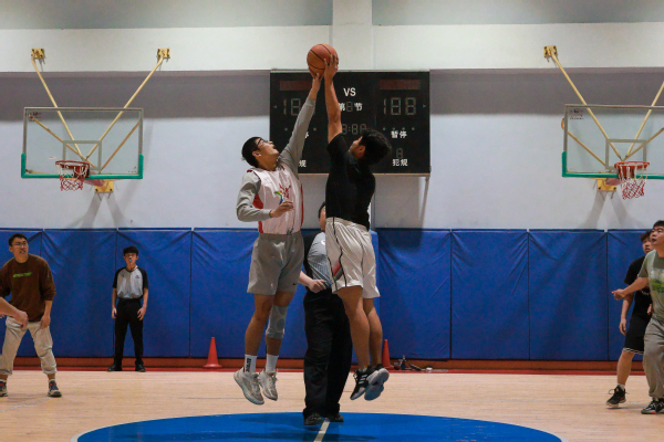 决赛分为两个部分,分别为4节篮球比赛和中场投篮比赛,每节比赛10分钟,中场休息时间举行投篮比赛,由各位老师代表两支队伍进行投篮,得分将直接计入双方比分。随着裁判哨声响起,激烈的比赛正式拉开帷幕。刚一开场,研2022级篮球队队长刘子骜以一记迅雷不及掩耳之势的突破点燃了场下观众的热情,喝彩声、呐喊声、助威声响成一片。上半场比赛,双方队员体力充沛,激烈对抗,积极拼抢、积极跑动、相互配合,每一次投篮都是一次精彩的碰撞。双方比分难以拉开差距,比赛进入白热化阶段。“加油!加油!”“投篮进啦!”观众们在赛场边不断地呼喊,为自己支持的队伍加油助威。中场休息时,黄朝琴副教授、韦贝副教授、周晓东老师、杨琪硕老师分别代表两支队伍进行了投篮比赛,运球、合球、起跳、投篮,一气呵成,都以极高的命中率为各自队伍增加了分数。下半场比赛开始之后,研2022级篮球队利用速度优势突然启用全场紧逼战术,压迫性的防守一度让缺少外线的本科2020级篮球队无所适从,经过短暂的调整,本科2020级篮球队通过身高优势,利用扎实的掩护和大范围的传球破解了全场紧逼,双方球员依旧奋力拼搏,精彩的蝴蝶穿花,背后运球,后仰跳投,一个个精彩的潇洒的动作,将比赛推向高潮。最终,在裁判的悠长哨声中迎来了这场酣畅淋漓的决赛的结束,比赛记分牌定格在59:35,研2022级摘得桂冠,获得本次比赛的冠军,本科2020级获得本次比赛亚军。
