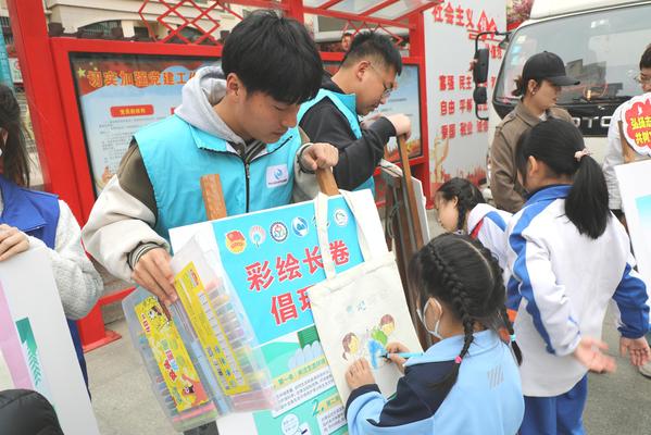 活动伊始,青岛西海岸东岳路社区党支部书记发表讲话,进行活动动员,鼓励参与人员通过参加不同的打卡活动,提高对于现有环境问题的关注,增强践行低碳生活的意识,助力生态文明建设,在全体参与人员澎湃激昂的宣誓中,活动拉开帷幕。随后,儿童表演者通过朗诵与健身操的表演形式,响应环保梦想舞台的初衷,极大调动了参与人员的活动积极性。之后,大家积极参加各种现场活动,包括张贴海报、展板宣传、手绘长卷、科普倡导、光盘绘画、环保DIY、环保市集、十米长卷献礼地球日等,活动形式多样,文明绿色氛围浓郁,同时党员同志积极投入到不同的活动区域进行志愿活动,讲解活动内容,宣传环保理念,保证活动有序开展。