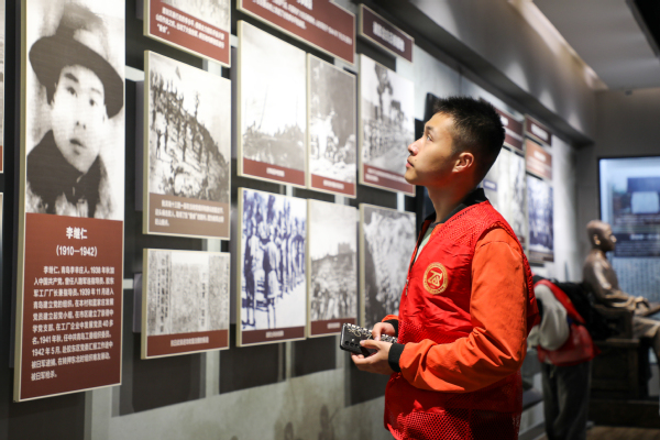 随后,研学队伍来到第二站——青岛市革命烈士纪念馆。进入大门,走过青葱的绿树丛,映入眼帘的是山河魂群雕,雕刻着革命英烈奋勇冲锋场面的浮雕,引起成员们对革命峥嵘岁月的遥想,在场成员无一不为之敬仰、动容。先锋班成员先后参观了抗战馆、军魂馆,抗战馆以“铭记”为主题,陈展青岛两次被日本侵占长达16年战争罪行历史图片以及青岛军民抗战的历史;军魂馆以“破晓”为主题,主要陈展抗战胜利后青岛党组织领导的地下斗争以及开展护厂、护市、护校等英勇斗争。青岛儿女用不屈地反抗与斗争,保家卫国,抒写了一段慷慨悲壮的抗战史诗。一进入青岛市革命烈士纪念馆,映入眼帘的入党誓词让人肃然起敬,那是无数革命烈士的铮铮誓言,他们做到了!先锋班成员沿着英雄烈士的闪光足迹,穿越时空,去追寻那须臾不可或缺的信仰之光,去感受他们热爱祖国、忠于人民、无私奉献、敢于牺牲的精神。在中国探索、改革、发展时期,革命烈士用生命和献血书写了为中国人民谋幸福、为中华民族谋复兴的英雄史诗,只要祖国和人民需要,他们义无反顾、逆行而上,敢于赴汤蹈火,勇于向死而生,在战火硝烟中接受洗礼,在生死较量中淬火铸炼,用胜利凯歌回报祖国和人民,他们是时代的先锋、民族的英雄!