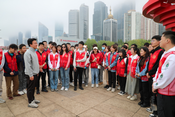 最后,研学队伍来到第三站——五四广场。进入五四广场,让人眼前一亮的标志性建筑物“五月的风”矗立在广场中央,昭示着永不低头、捍卫主权的坚定信念以及张扬腾升的民族力量。在讲解员的带领下,先锋班成员了解到了“五月的风”雕塑采用螺旋上升的风的造型,融合火红的色彩,充分体现了“五四运动”的反帝反封建的伟大意义,喻示出一种张扬腾飞的民族力量,更代表着青年勇担时代重任,甘当时代先锋,不怕流血、不怕牺牲的爱国精神。“在这里我能感受到五四运动浓厚的爱国精神,我们不能忘记今天的幸福生活是先烈给予我们的,我们更应当传承爱国主义精神,深入学习五四运动精神,紧跟党的步伐,担负起新时代新青年的责任。”先锋班成员裴平安在采访中感慨道。