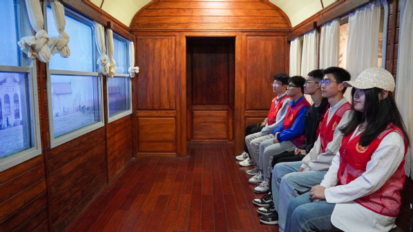 怀着激动与庄严的心情,研学队伍来到第一站——“一战”遗址博物馆。青岛一战遗址博物馆分为“德占青岛”、“日德战争”、“苦难归程”三个展厅和炮台遗址,以“还我青岛”为主题,通过陈列的各项文物、档案资料以及运用场景复原、多媒体等现代化布展手段,向参观人员展现了青岛被侵略的血泪历史和收复主权的苦难征程。进入第一展厅,目光所及之处,皆为德占青岛血淋淋的罪证。德国在青岛开港口、筑铁路、建城市、修要塞,胶州湾事件更是掀起了帝国主义瓜分中国的新一轮狂潮。第二展厅着重叙述了第一次世界大战的爆发历程。经过日德战争,德军战败,青岛再次沦为日本的殖民地。迈着沉重的步伐进入第三展厅,青岛终于迎来了胜利的曙光。面对严重的民族危机,中国人民发出“还我青岛”的时代强音,奋起抗争,1949年6月2日青岛解放,这座饱经沧桑的城市真正回到了中国人民手中。展厅的最后,“红日初升,其道大光”八个大字高悬头顶,先锋班成员们仰首注视,目光坚定。随后,先锋班成员们跟随讲解员的脚步从展厅内移至青岛山炮台遗址,进入狭窄的通道,逐一参观了一号炮位、弹药库、锅炉房等设施,这些帝国主义侵略中国的历史铁证激发了先锋班成员们能源强国的决心。沧桑之变路艰辛,风雨归程多磨难,历史无法改变,但未来可以塑造,第一站研学结束,先锋班成员们意气风发的脸上更添了一丝庄重与坚定。