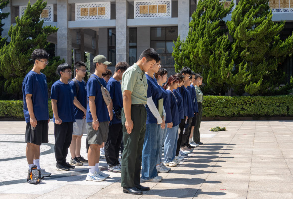 图为实践队员在英名碑前默哀 马昭扬摄