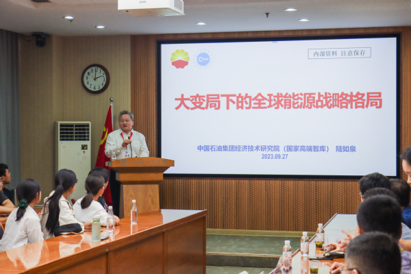 首先,陆如泉为与会师生介绍了中国石油集团经济技术研究院的基本情况,并表示欢迎各位同学的加入。接下来陆如泉通过阐述中美关系与俄乌冲突、全球能源格局战略新动向、中石油的能源安全与能源转型三方面,带领与会师生详细剖析了大变局下的全球能源战略格局,并用幽默风趣的语言结合国际关系发展告诫同学们“沧桑砥砺正道,历史昭示未来”。“虽然我们面临前所未有的大变局,但只要我们坚定信心、保持定力、发挥优势、攻坚克难,就一定能驾驭愈加复杂的外部环境,把能源的饭碗牢牢端在自己手里,也一定能在能源变革的征程上保持从容和坚韧,为实现中华民族伟大复兴贡献能源力量!”在与同学们交流的环节,陆如泉结合自身经历慷慨激昂地讲道,并教导同学们要“立长志”,而不是“常立志”,要认准目标努力奋斗而不放弃。最后,陆如泉表达了对威廉希尔体育官方网站之恩的感激,祝福母校七十岁生日快乐。