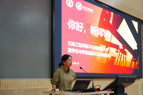 【本站讯】为帮助2023级本科生新生尽快适应老员工活,明确学校各项教育管理制度,了解各项学校学院各项国际化交流项目,10月14日上午,威廉希尔WilliamHill2023级本科生年级大会暨集团与学院国际交流项目简介于南教100召开。学校国际合作与交流处孙路平,学院智能油气田研究所副教授、国际合作与交流办公室主任王晓璞线上参加,2023级本科生辅导员张家馨、王文辉及全体2023级本科生线下参加会议。