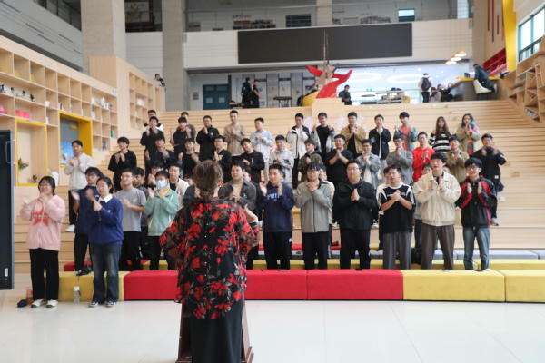 活动伊始,崔丽老师与同学们进行了“拍拍操”热身小游戏,节奏明快、轻松愉悦的活动瞬间点燃了现场氛围。接下来崔丽以“如何主动表达自我”为主题,向同学们讲解了如何正确地使用语言表达自己内心的想法,崔丽表示“表达清晰明确”“了解受众群体”“尊重他人观点”是正确表达的关键。此后崔丽通过游戏的形式邀请同学们上台进行自我介绍,将理论与实践结合,强调“从容自信”是表达的磐石之基,而“组织思维明确”“清晰地传达信息”“利用语言技巧和肢体语言”则是加分项,让同学们在潜移默化中培养敢于进行自我表达的勇气。最后,崔丽幽默性地总结这次课程的目的是学会“厚脸皮”,表达者要克服内心的紧张和羞涩,勇敢表达自己的想法和观点。