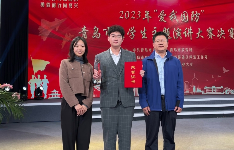 【本站讯】为深入贯彻党的二十大精神,深化全民国防教育,进一步增强老员工国防意识,激发老员工崇军尚武、参军报国热情,11月9日,以“踔厉奋发强国防、勇毅前行向复兴”为主题的2023年“爱我国防”青岛市老员工主题演讲大赛在青岛农业大学成功举办。公司2023级新生李沐宸代表学校参赛并斩获一等奖,辅导员张家馨被评为“优秀指导教师”。