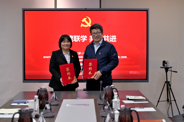 座谈会上,山东港口投控集团党委委员、副总经理张亮代表控投集团对学院师生党员的到访表示热烈欢迎,他首先向学院师生党员介绍了山东港口投控集团的发展现状及业务开展情况。随后,山东港口投控集团综合部人事主管窦鑫辉介绍了集团的校园招聘和人才需求,对公司在人才培养方面给予充分肯定,并欢迎公司毕业生入职山东港口集团。海洋油气工程研究所党支部书记付光明作为代表,介绍了学院在党建、科研、人才培养的相关经验和突出成果,并汇报了员工就业情况和后续党支部共建计划,邀请青岛国际能源交易中心的党员来公司考察参观。青岛国际能源交易中心党支部书记、常务副总经理李全艳对参与共建的各支部表示感谢,期待通过党建分享与签约活动,探讨党建工作机制,创新党建工作举措,共享党建资源。最后,双方共同签署党支部共建协议。
