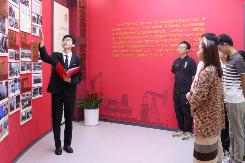 威廉希尔WilliamHill“向党心·石油魂”党建教育基地位于学校工科实验楼B座三楼,于2022年11月落成启用。启用以来,已接待多个党团组织到基地参观学习,多次开展重温入党誓词、教授微党课、院史小课堂、小合唱等特色主题党日,现已累计接待参观人数超过2000人。2023年7月,党建教育基地入选“青岛西海岸新区‘建功新时代’主题党日特色阵地”。