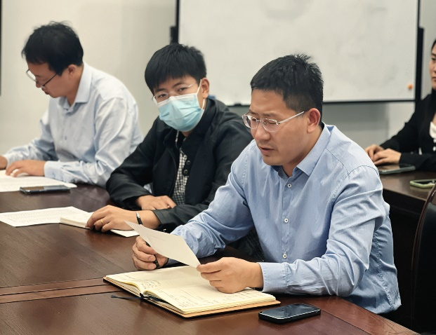 周晓东宣读新一届研究生会名单。研究生会主席团以及各部门成员依次介绍部门建设情况,围绕强化思想引领、加强组织建设、提升能力素质、推进学风建设、浓厚文化氛围、增强权益服务、打造品牌活动等方面汇报工作计划。黄维安认真听取并代表学院对上一届研究生会的工作表示肯定,对新一届研究生会成员的加入表示感谢,结合部门工作计划提出中肯建议,希望同学们明晰工作职责,做好部门协同,在提升研究生综合素养以及学术能力、倡导健康生活等方面主动思考和作为。周晓东强调员工们应该发挥好主观能动性,多听、多问、多看、多尝试,贴合实际去创新,为学院发展贡献自己的力量。新一届研究生会成员在研究生会主席郭岳松的带领下庄严宣誓,并在“创造太阳”雕塑处合照。