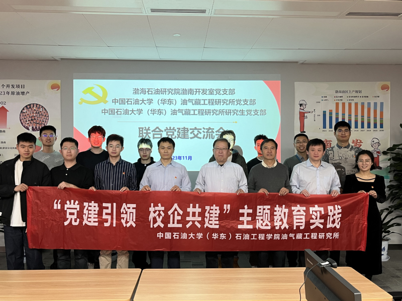【本站讯】为深入贯彻落实党的二十大报告中关于“加强企业主导的产学研深度融合,强化目标导向,提高科技成果转化和产业化水平”的重要指示精神,进一步落实校企党建共建协议,11月28日,油气藏工程研究所党支部、油气藏研究生第四党支部与中海油渤海石油研究院开发一所渤南开发室党支部开展“党建引领,校企合作”主题教育联合党建活动,教师和研究生党员代表、渤南开发室党支部书记、党员代表参加活动。