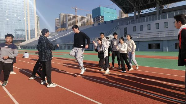 从确认参赛到比赛当天一个多月的时间里,班级共组织不低于十次的集体训练,无论是清晨还是傍晚,是田径场还是工科楼B,都能看到本研石2201班同学挥洒汗水的身影。由于人员变动和规则修改,起初同学们配合并不默契,似乎幸运之神不再眷顾他们,越来越冷的天气、越来越难以统一的训练时间,都证明着他们和去年的标准还相差甚远。但是通过不断的磨合和同学之间的相互鼓励,在一次不达目标不停歇的训练后,他们终于实现了突破,逐渐步入正轨。