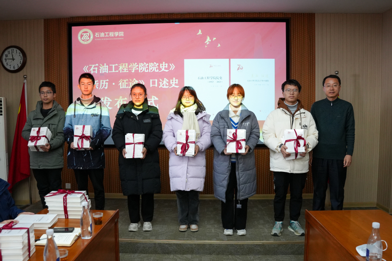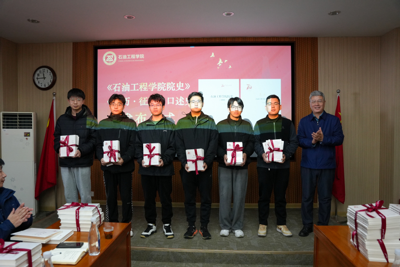 张卫东向教工党支部赠书,沈刘峡、刘积舜向员工代表赠书。希望师生从学院70年艰苦创业的历史中汲取奋进力量,在每一位石工人心中埋下能源报国的种子,让老一辈石油人的不屈意志为后辈指明前进方向。
