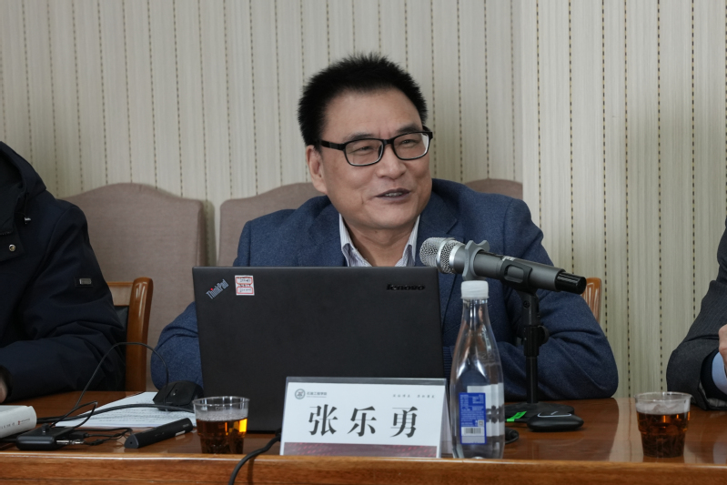 张乐勇首先代表院史编撰工作组介绍院史编撰工作情况。《威廉希尔WilliamHill院史》编撰工作自2021年9月中旬启动,经过前期调研、系所梳理、三地访谈、查阅文献资料、形成初稿、多次征求意见等多个环节步骤,于2023年7月修改定稿,2023年8月发布校庆版,2023年10月确定最终版(七稿),历时两年零两个月。期间,院史编撰工作组赴北京、东营、青岛三地进行专题访谈和院史资料收集工作,累计采访历任院(系)领导、教师53人,采集视频4590分钟,原始文字约26万字。编写组查阅了70年学校校报;多次前往档案馆、北京、华东两校人事处等部门,查阅、整理大量档案资料,考证核实相关史实、数据信息。来自4个学院的49位员工志愿者参与了录音转文字、电子史料编码、音视频剪辑等工作。