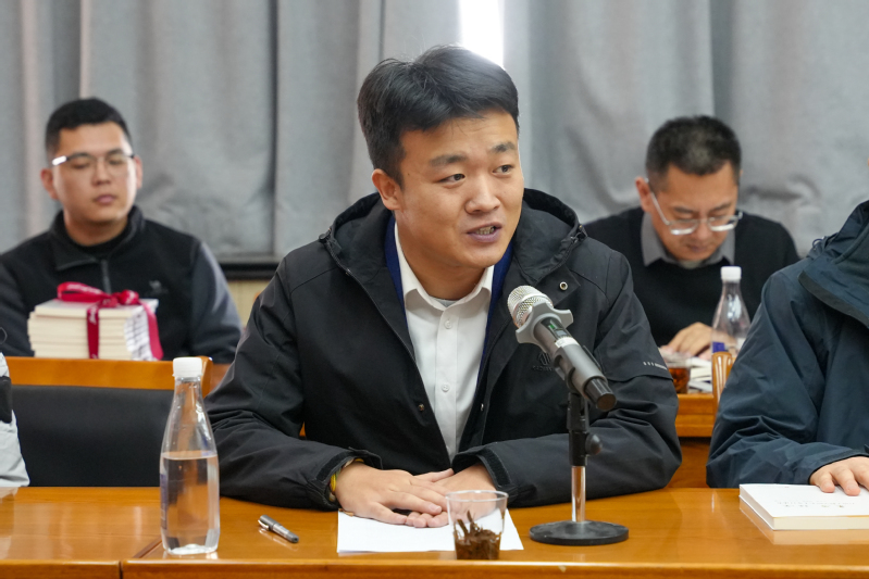 员工代表周家豪发言。他讲述了参与院史编撰工作的切身经历和心得体会,为公司70年的光辉历史表示由衷赞叹,并向院史编写组的老师们表示敬佩与感谢。结合采访学院老教授时的所见所闻,他感受到学院始终葆有扎根第一线、瞄准最前沿、争做排头兵的作风与气质,并将这种气质在一代代师生中传承发展,逐渐成为“石工人”共同的精神印记,成为公司高质量发展的精神源泉。