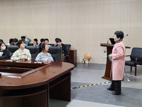 “他”强任“他”强,“妳”尽可做一缕春风,拂过自己的山岗。讲座环节,解老师从“女性认知维度的重要性”出发,为同学们讲解女性应当终生追求的事情——进阶与成长,鼓励女生们勤于思考、挖掘人生的深度。接着,解老师分享亲身经历,与同学们探讨“职场性别平等”、“恋爱双方的能力”、“婚后家庭的分工”等话题,强调女生要努力脱离原生家庭束缚,坚持做自己,实现人生蜕变。互动阶段,老师耐心倾听并细心解答了孙雅琦、刘昊宸、颜平在“女性婚后生育”方面的问题。最后,解老师语重心长,向女生们提出寄语,鼓励女生们自尊、自信、自立、自强,实现精神与经济双重独立、双重解放;向男生们表达期望,提倡男生关怀女性,平等看待性别差异,早日实现社会平权,主题讲座在同学们的热烈掌声中圆满结束。