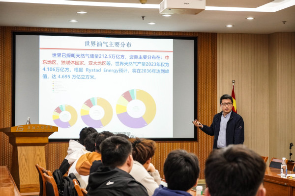 活动伊始,付光明老师便以自身丰富的经历为引,向同学们深入剖析了最新的油气调研成果。他详细介绍了海洋油气工程的重要性以及广阔的发展前景,并特别强调了同学们应该树立的“三个自信”——行业自信、专业自信以及院校自信。在讲授的过程中,付老师巧妙地抛出了一个引人深思的问题:“石油行业是否如外界所言正处于下坡路?”他通过展示多组油气开采的详实数据,清晰地指出油气生产量与探明储量并非同一概念,尤其是海洋油气的可开采量依然可观。作为国内外油气增长的关键一环,随着技术日新月异,开采量逐年攀升,海洋油气产业在未来的投资将持续增长,展现出无比广阔的发展前景。